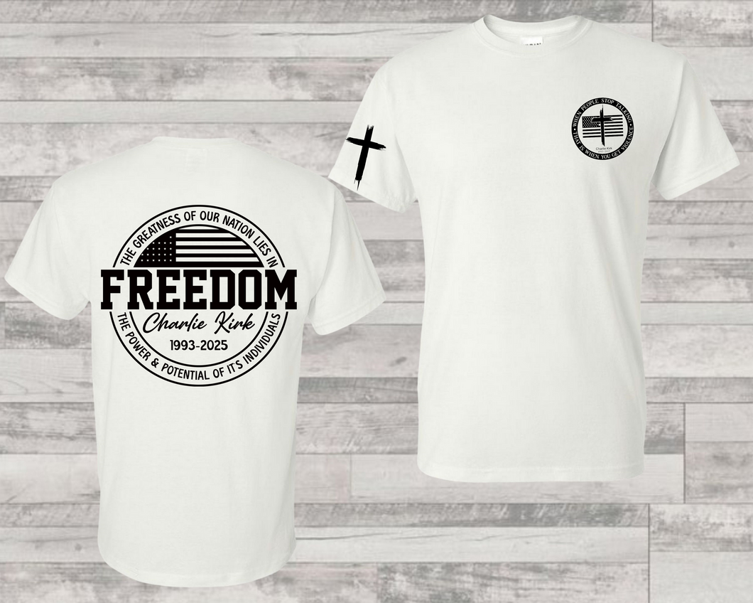 The Freedom Charlie T-shirt offers a softstyle fabric that ensures exceptional comfort and durability. Perfect for everyday wear, this tee combines a modern fit with breathable material to keep you comfortable throughout your day. Its design celebrates freedom with a clean, sharp look, making it ideal for those who value both style and substance in their wardrobe.